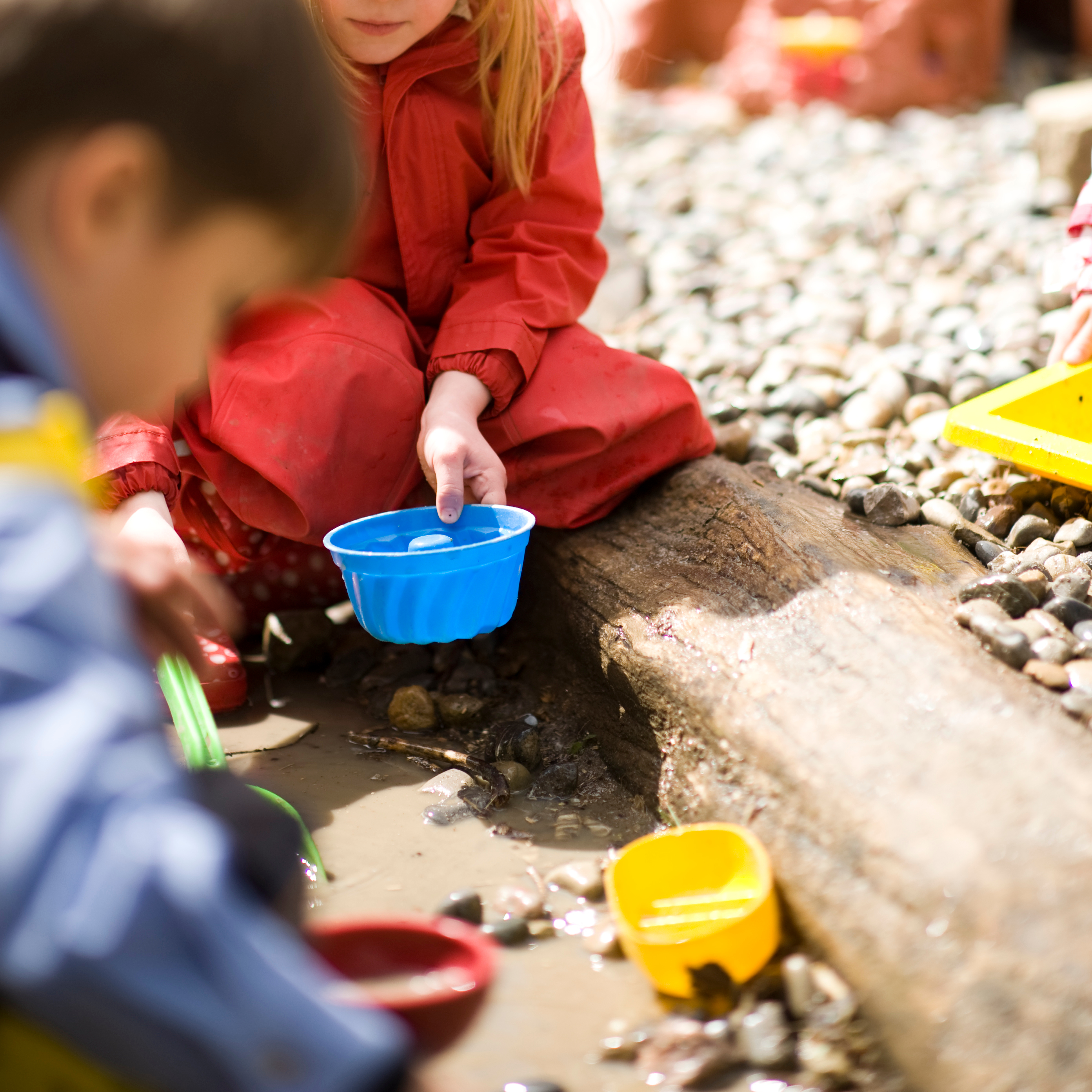 Gelb steht für Sand, er ist ein tolles Spielmaterial. Sobald Sauberkeit und Schutz vor übermäßiger Sonne gewährleistet sind, steht dem „Strandgefühl“ nichts mehr im Wege. Gerade natürlich angelegte Sandspielflächen sind ein Platz für neue Erfahrungen von Kindern und Erwachsenen.